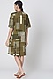 Featuring an olive green dress in cotton base with geometric handblock print.