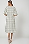 Featuring a white midi dress in cotton base with geometric handblock print.