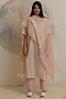 Featuring a pink kurta in pure cotton base with block print. It is paired with matching pants and a dupatta.