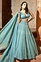Aqua Blue Organza & Shantoon Lehenga Set