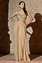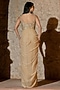 Featuring a beige gold draped gown in organza, shimmer crinkle georgette and shantoon base with embroidery. Accentuate it with zircon jewellery and block heels for evening soirees or cocktail parties.