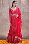 Featuring a rani pink tiered anarkali in georgette, net, and shantoon base with back cut-out including mirror and nakshi embroidery. It is paired with a matching dupatta.