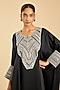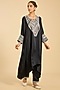 Featuring a black kaftan in striped tissue base with geometric yoke and marodi hand embroidery. It is paired with straight pants. Accentuate it with polki jewellery and block heels for festive occasions or pooja ceremony.