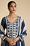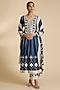 Featuring a blue anarkali in chanderi base with chikankari embroidery. It is paired with muslin pants and a malai chanderi lacework dupatta. Accentuate it with dangler earrings and heels for a festive occasion or pooja ceremony.