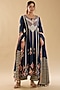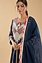 Featuring a blue anarkali in chanderi base with japanese sashiko embroidery and ikat patchwork. It is paired with pants and a malai chanderi dupatta having lace work and ikat detail. Style this with minimal jewellery and heels for a festive occasion or family gatherings.