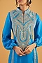 Featuring a blue kurta in habutai base with dori hand embroidery and balloon sleeves. It is paired with straight pants. Accentuate it with statement jewellery and heels for a festive occasion or pooja ceremony.