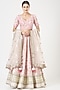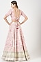 Featuring a blush pink lehenga in a chanderi silk base with resham embroidery and gota highlights. It is paired with a matching floral embroidered blouse and an organza dupatta having resham embroidery.