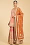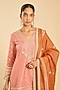 Featuring a coral short kurta in banarasi, chanderi and muslin base with marodi and gota work. It is paired with sharara pants, including a tissue dupatta having dori, dabka and sequins hand embroidery. Accentuate it with polki jewellery and block heels for festive occasions or daytime weddings.