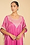 Fuchsia Pink Striped Tissue Hand Embroidered Kaftan Set