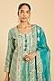 Featuring a green kurta in banarasi base with gota embroidery. It is paired with chanderi paneled sharara pants and an organza embroidered dupatta. Accentuate it with polki jewellery and block heels for weddings, mehendi or engagement ceremony.