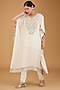 Featuring an ivory kaftan in habutai silk base with silver dori detail and hand embroidery. It is paired with straight pants. Accentuate with statement jewellery and heels for festive occasions.