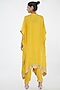 Featuring a mustard kaftan in habutai silk base with silver dori detail and hand embroidery. It is paired with straight pants. Accentuate with statement jewellery and heels for festive occasions.