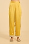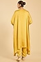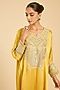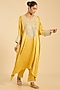 Featuring a mustard kaftan in striped tissue base with geometric yoke and marodi hand embroidery. It is paired with straight pants. Accentuate it with polki jewellery and block heels for festive occasions, haldi or pooja ceremony.