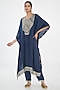 Featuring a navy blue kaftan in habutai silk base with silver dori detail and hand embroidery. It is paired with straight pants. Accentuate with statement jewellery and heels for festive occasions.