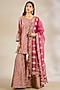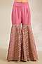 Featuring a pink short kurta in chanderi, organza and muslin base with embroidery. It is paired with an embroidered flowy sharara and a red dupatta. Accentuate it with statement jewellery and heels for festive occasions, pooja or sangeet ceremony.