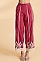Featuring a red straight kurta in chanderi and muslin base with chikankari embroidery. It is paired with linen pants and a malai chanderi lacework dupatta. Accentuate it with dangler earrings and heels for a festive occasion or pooja ceremony.