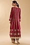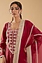 Featuring a red anarkali in linen base with chikankari embroidery. It is paired with embroidered pants and a malai chanderi dupatta having lace work. Style this with minimal jewellery and heels for a festive occasion or family gatherings.