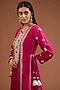 Featuring a reddish pink side tie-up long kurta in habutai base with silver dori and nakshi hand embroidery. It is paired with straight pants and an organza dupatta having gota and nakshi work. Accentuate it with statement earrings and heels for a festive occasion or pooja ceremony.