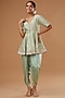 Featuring a sea green peplum jacket in chanderi base with thread, zari, dabka and dori embroidery. It is paired with modal silk dhoti pants. Perfect for festive occasions or wedding ceremony.