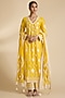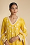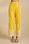 Featuring a yellow straight kurta in chanderi and muslin base with chikankari embroidery. It is paired with linen pants and a malai chanderi lacework dupatta. Accentuate it with dangler earrings and heels for a festive occasion or haldi ceremony.