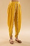 Featuring a yellow short choga kurta in chanderi base with ajrakh patchwork, dori and nakshi embroidery. It is paired with modal silk dhoti pants and a malai chanderi dupatta having lace work. Style this with minimal jewellery and heels for a festive occasion or family gatherings.