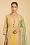 Featuring a yellow and green kurta in banarasi base with gota embroidery. It is paired with chanderi paneled sharara pants and an organza embroidered dupatta. Accentuate it with polki jewellery and block heels for weddings, haldi or engagement ceremony.