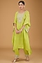 Featuring a yellow kaftan in habutai silk base with silver dori detail and hand embroidery. It is paired with straight pants. Accentuate with statement jewellery and heels for festive occasions.