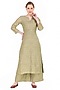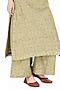 Featuring a green handcrafted kurta in chanderi base with print and gold zari details. It is paired with matching pants.