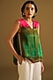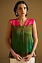 Featuring a multi-colored top in silk linen base with a notched-neckline, beads hand embroidery and front pleat detailing. Accentuate it with a jacket, denim pants or wide-leg trousers, stud earrings and flats for a relaxed-chic look, perfect for for brunches, casual outings or daily office wear.