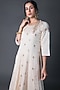 Featuring an off white kurta in raw silk satin and chiffon base with zardosi and gota embroidery. It is paired with matching pants and a dupatta.