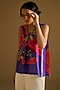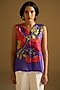 Featuring a purple sleeveless top in silk linen base with a V-neckline, beads embroidery, floral print and box-pleat detailing. Accentuate it with a jacket, denim pants or wide-leg trousers, stud earrings and flats for a relaxed-chic look, perfect for for brunches, casual outings or daily office wear.