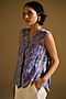 Featuring a purple top in silk linen base with print, beads embroidery and side seam detailing. Accentuate it with a jacket, denim pants or wide-leg trousers, stud earrings and flats for a relaxed-chic look, perfect for for brunches, casual outings or daily office wear.