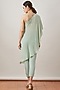 Featuring a sage green off shoulder kurta in crepe base with applique, sequins, and thread hand embroidery. It is paired with matching satin linen pants.