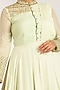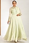Featuring a luminary green gown in modal silk base with a collar and tessellated pipework. It comes with an attached pleated dupatta.