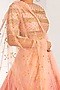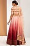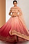 Featuring a salmon pink to light coral ombre lehenga in chanderi silk base with pipework embroidery. It is paired with a matching blouse and a dupatta.