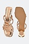 Featuring a pair of rose gold handmade braided heels in vegan leather base with foam cushioning. It has a leather underlining and 2-inch hexagon heels. These are perfect for any occasion and provide comfort at the same time.