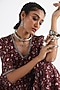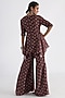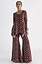 Featuring a brown top in georgette satin and taffeta base with embroidery and print. It is paired with matching flared pants.