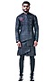 Featuring a charcoal black overlapped bundi jacket in ghicha base. It is paired with a matching asymmetrical kurta and churidar pants in cotton silk base.