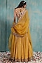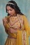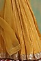 Featuring a fresh yellow lehenga in chinon base with gota embroidery. It is paired with a matching net and taffeta blouse having mirror work and a soft organza dupatta.