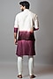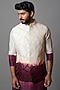 Featuring an ivory and wine ombre bundi jacket in bamberg silk base with pipe and criss-cross thread embroidery. Perfect wear for a festive occasion, engagement or wedding ceremony.