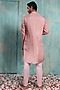 Featuring an onion pink kurta in silk base with embroidery. It is paired with contrasting pink malai cotton pants.