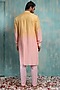 Featuring a sunshine yellow and lemonade pink kurta in silk base with ombre dye. It is paired with matching malai cotton pants.