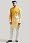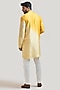 Featuring a yellow ombre kurta in bemberg silk base with embroidery. It is paired with malai cotton pants. Perfect attire for festive occasion or haldi ceremony, exuding traditional charm and elegance.
