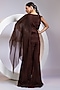 Featuring a brown pleated draped top in chinon base with floral applique and an attached one side cape. It is paired with palazzo pants. Accentuate it with zircon jewellery and heels for festive celebrations or wedding ceremony.