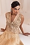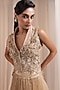 Featuring a champagne peplum top in tissue base with 3D floral and sequins embroidery. It is paired with a skirt. Accentuate it with zircon jewellery and heels for festive celebrations or wedding ceremony.