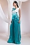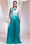 Featuring an ivory and aqua asymmetrical top in chinon base with 3D floral and beadwork. It is paired with ruched palazzo pants. Accentuate it with zircon jewellery and heels for festive celebrations or wedding ceremony.