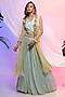 Lime Green & Aqua Chinon Lehenga Set