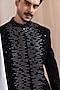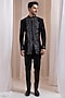 Featuring a black bandhgala jacket in lachka base with sequins, beads and thread embroidery. It is paired with trousers. Style it up with shoes for a reception, cocktail, sangeet or engagement ceremony.