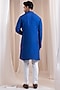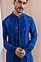 Featuring a blue kurta in silk base with bead and thread embroidery. It is paired with cotton pants. Style it up with kolhapuri sandals for a festive occasion, sangeet or engagement ceremony.