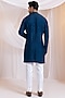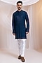 Featuring a deep royal blue kurta in silk base with pintuck detail and cutdana embellishments. It is paired with cotton pants. Style it up with kolhapuri sandals for a festive occasion, wedding, sangeet or engagement ceremony.